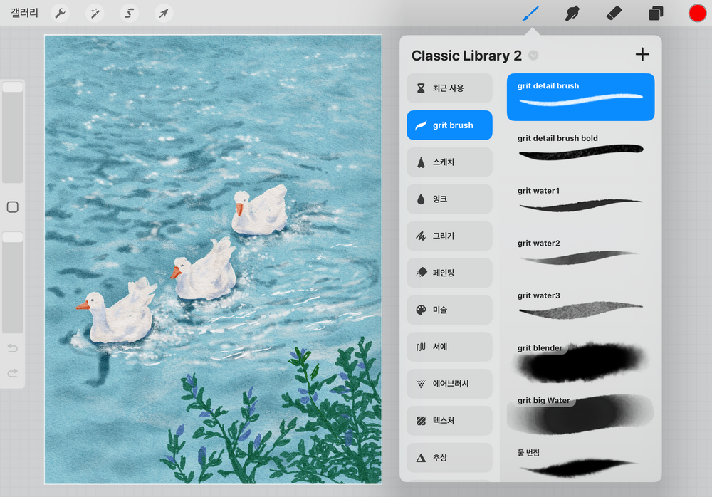 ✔ 브러시 10종 – 그릿스튜디오 감성 드로잉 전용