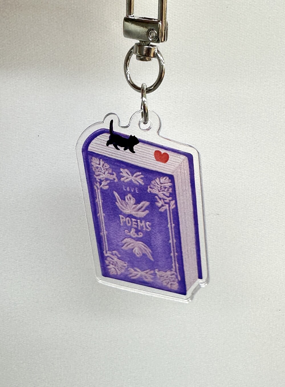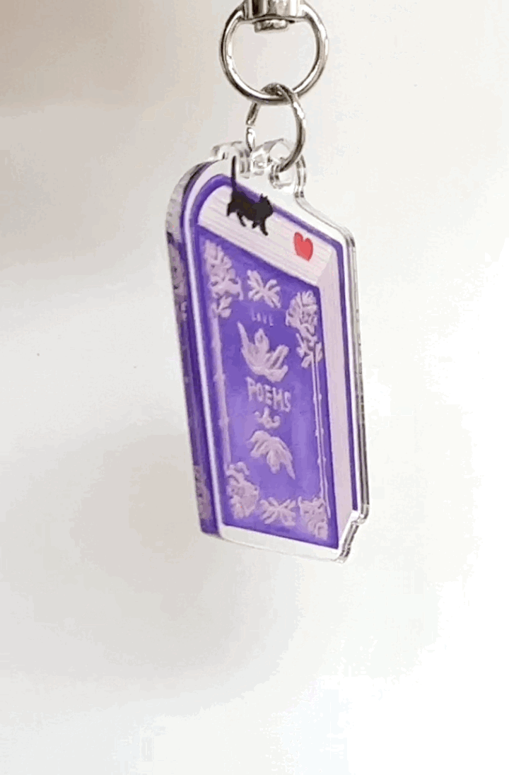 검은 고양이가 하트 책갈피를 향해 걸어가네요!