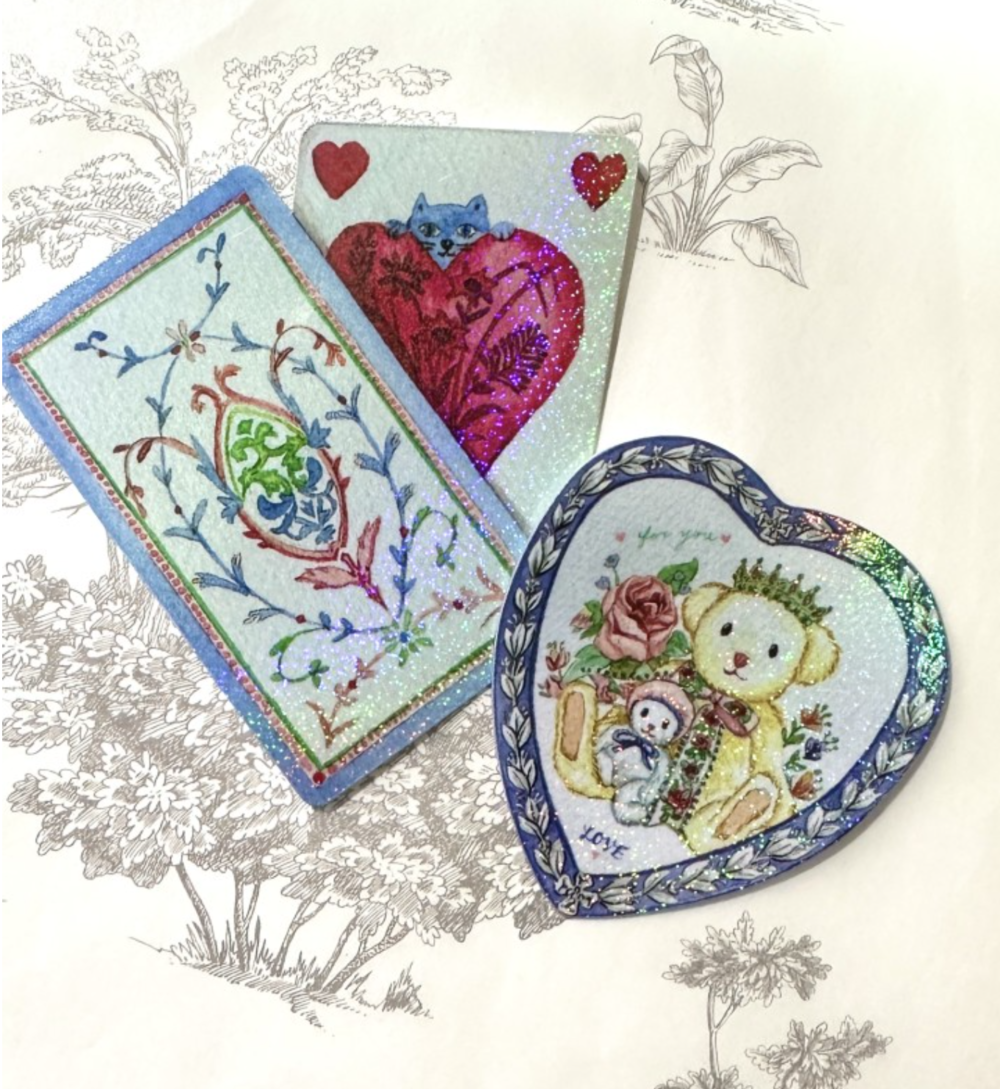 💜반짝이 코팅 2가지 종류-테디베어 하트, 러브카드 디자인 (크기는 가로 기준으로 하트 5cm,카드 7.5cm)