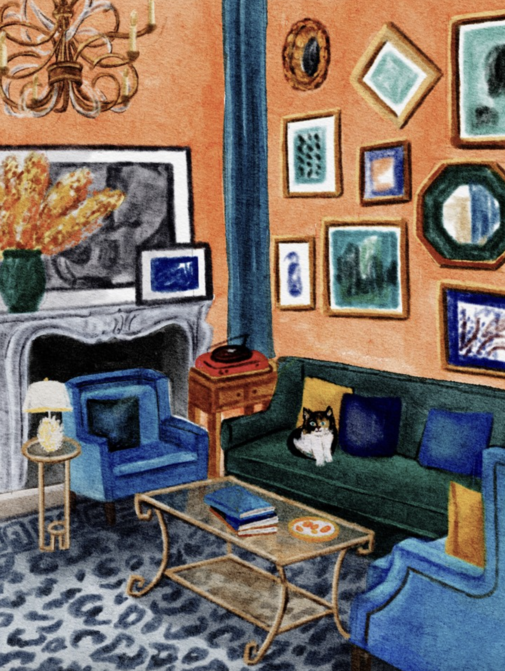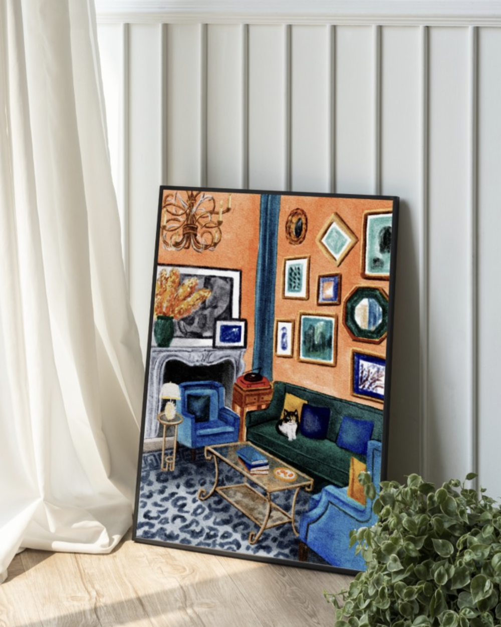 액자가 많이 걸려있고 예쁜 소품들이 가득한 집을 그린 "화가의 집-오렌지"