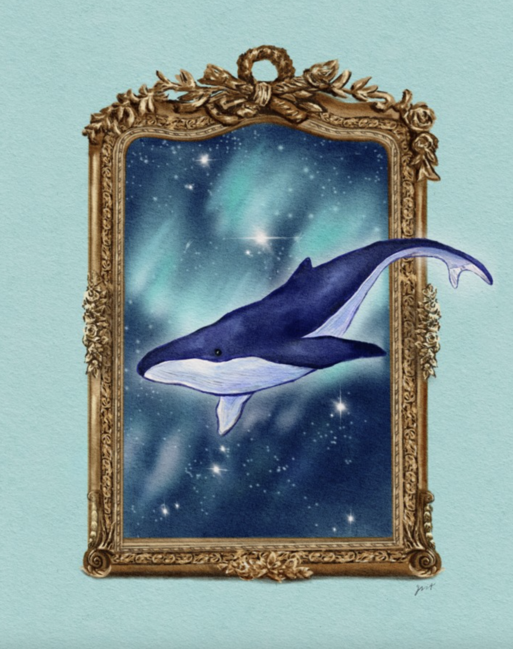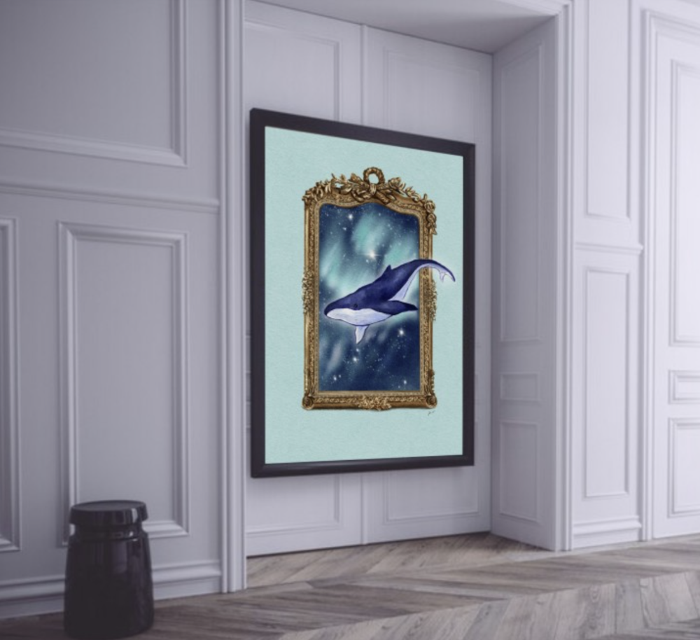 "액자 속 오로라로 들어간 고래!어떤 일이 일어날지 함께 상상해 볼까요?"